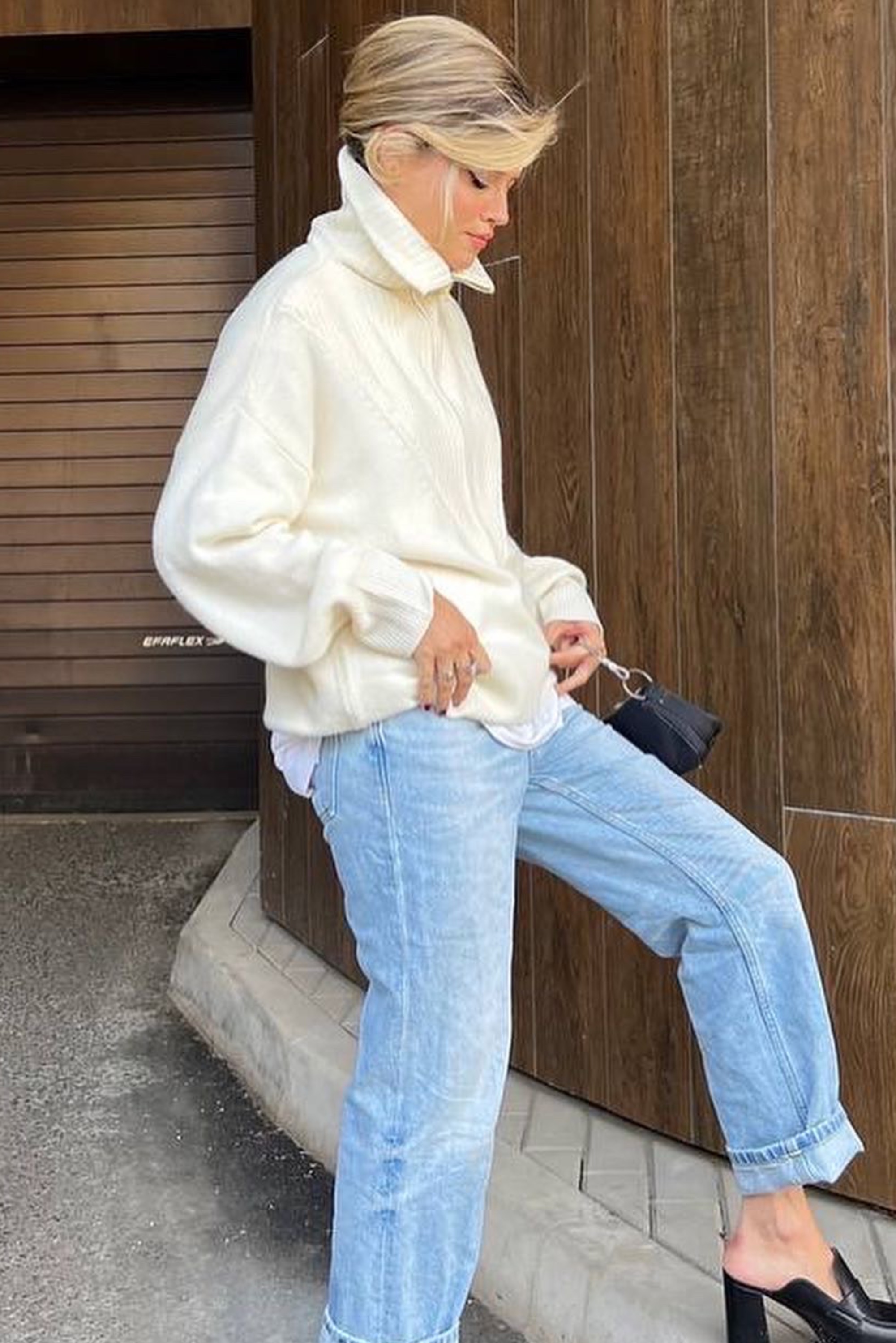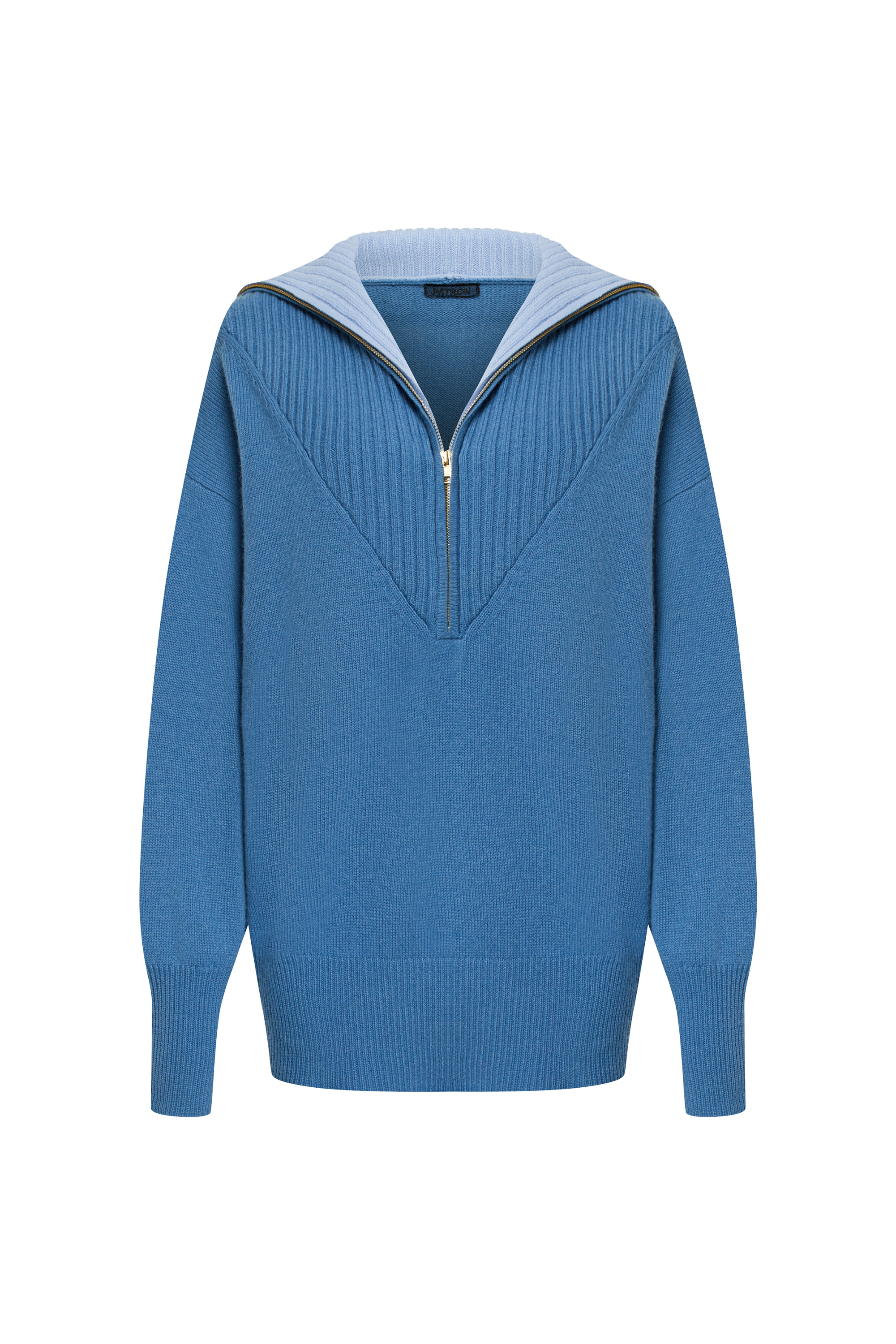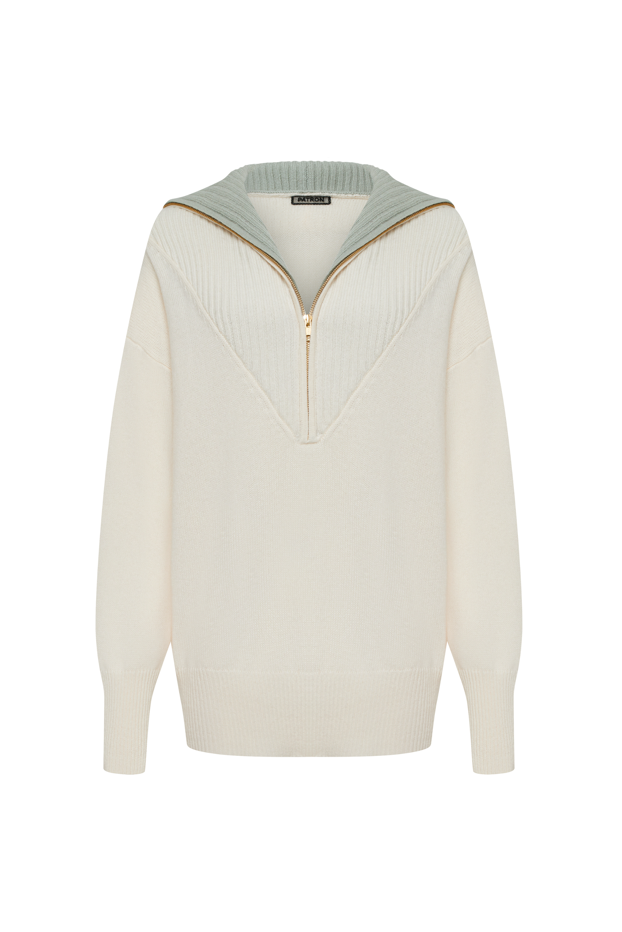 Этот удлинённый трикотажный джемпер оверсайз создан для комфорта, тепла и эстетики спокойной элегантности. Свободный объёмный силуэт мягко окутывает фигуру, позволяя носить изделие как с юбками, так и с брюками или леггинсами. Высокий воротник на молнии добавляет функциональности и позволяет регулировать образ — от расслабленного до более структурированного.