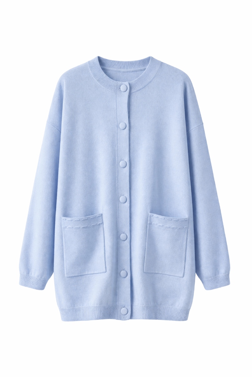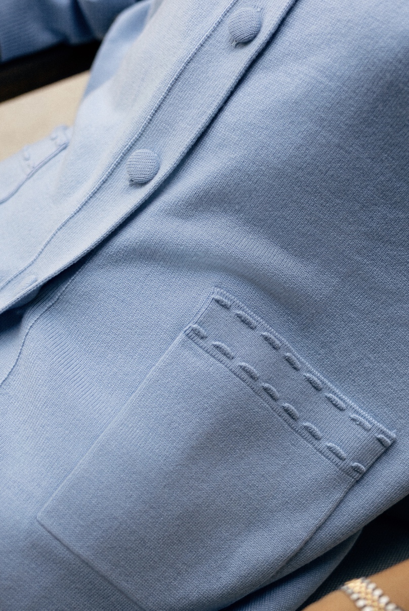 Удлинённый плотный кардиган из мягкой премиальной пряжи — это инвестиция в базовый гардероб. Модель выполнена в нежном пастельно-голубом оттенке, который освежает образ и легко сочетается с денимом, кожей или классической шерстью.
