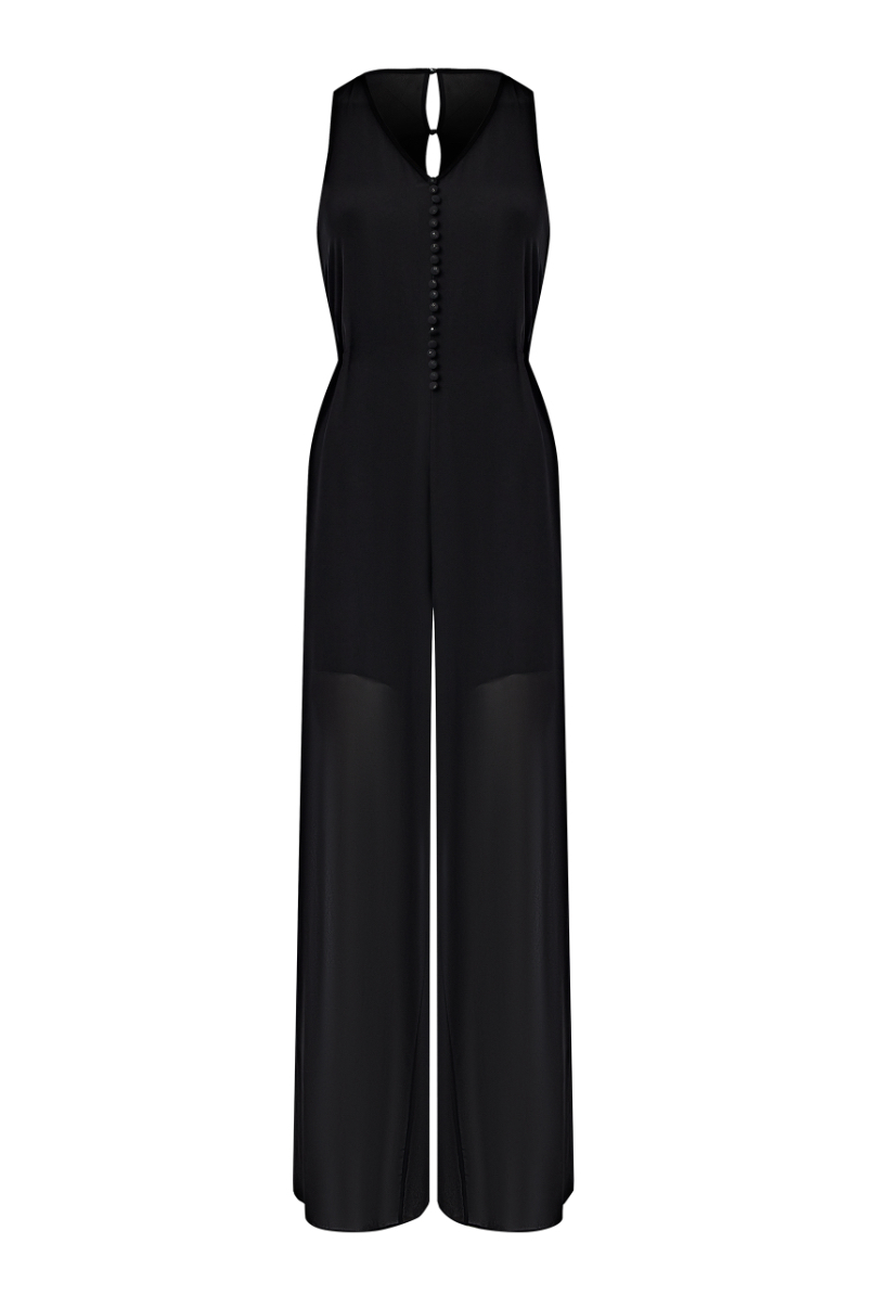 Женственный комбинезон из полупрозрачного шифона с шортиками внутри.