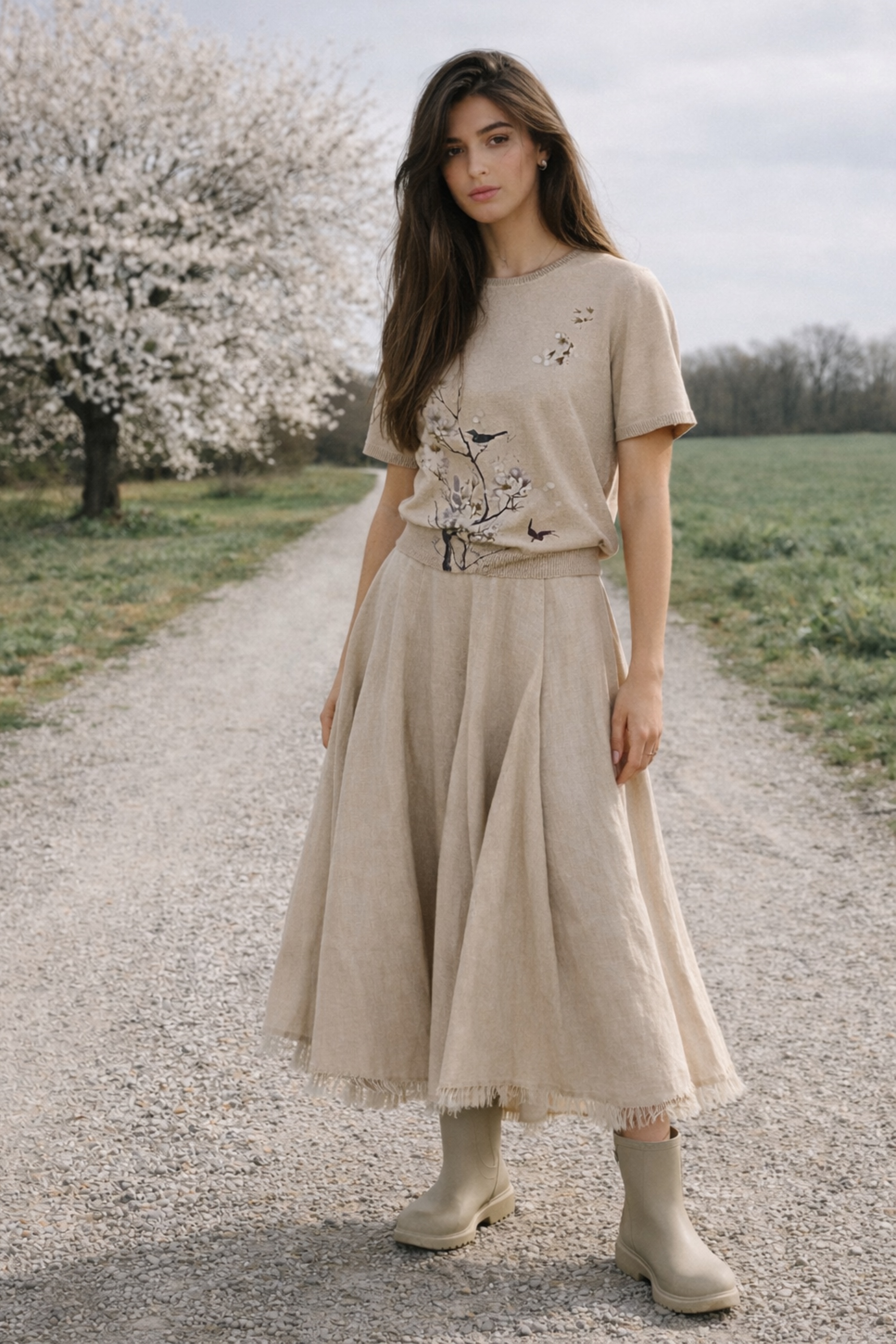 Объемная юбка из натурального льна — это баланс структуры и воздуха.