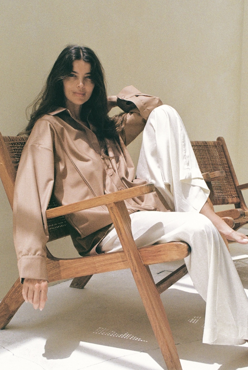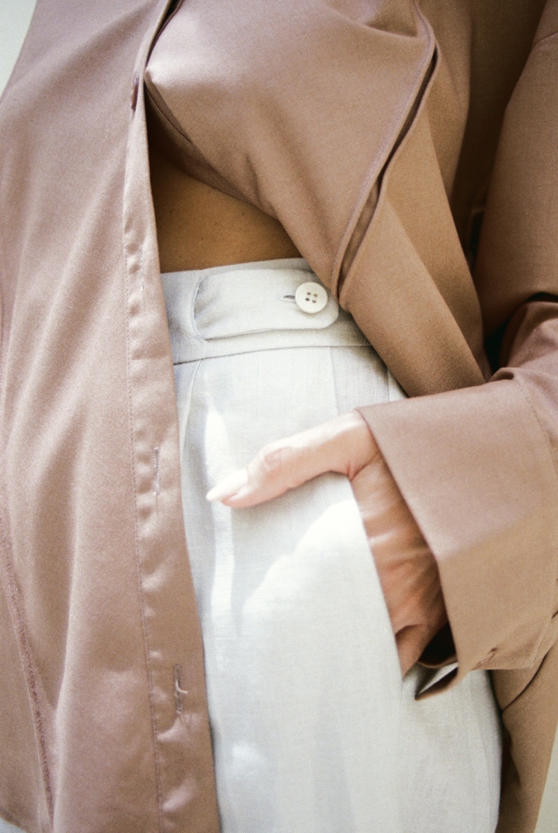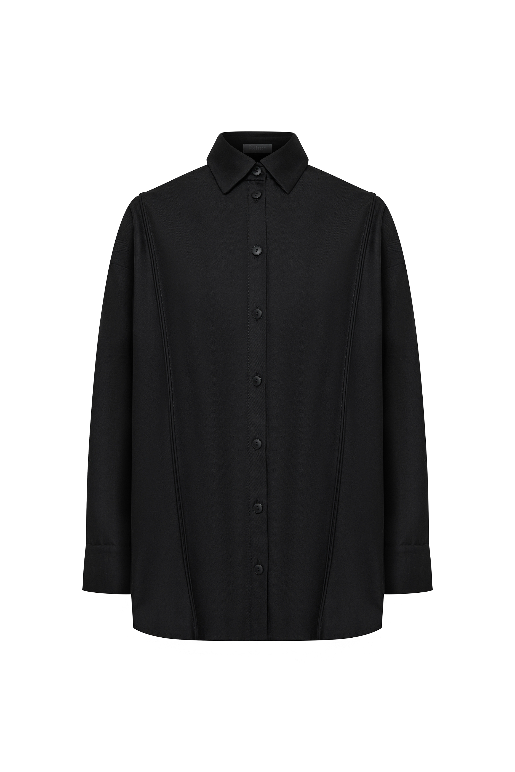 Акцентные рельефные линии мягко выстраивают форму по корпусу, визуально подчёркивая талию, сохраняя при этом лёгкий объём и ощущение свободы. Они не сковывают силуэт, а направляют его — создавая плавную, вытянутую линию тела и благородную посадку.